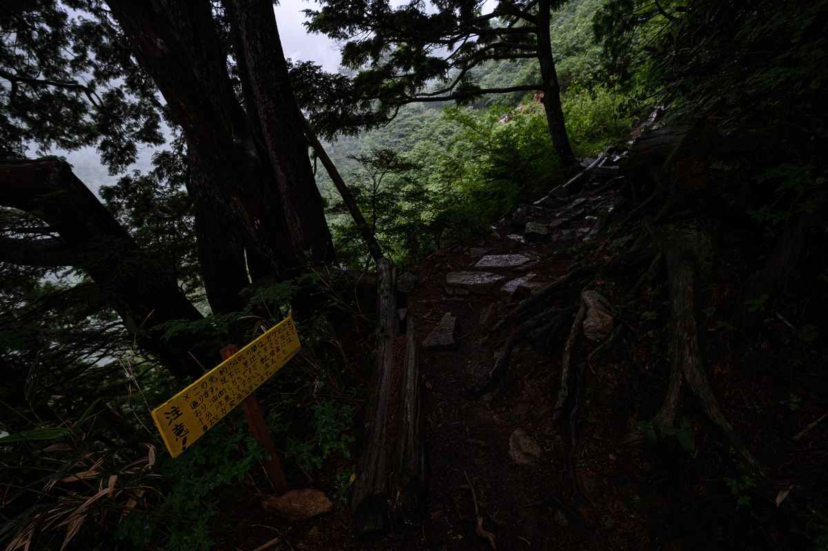 登山道から1時間ほど登ったところに優しい注意書きがあります。