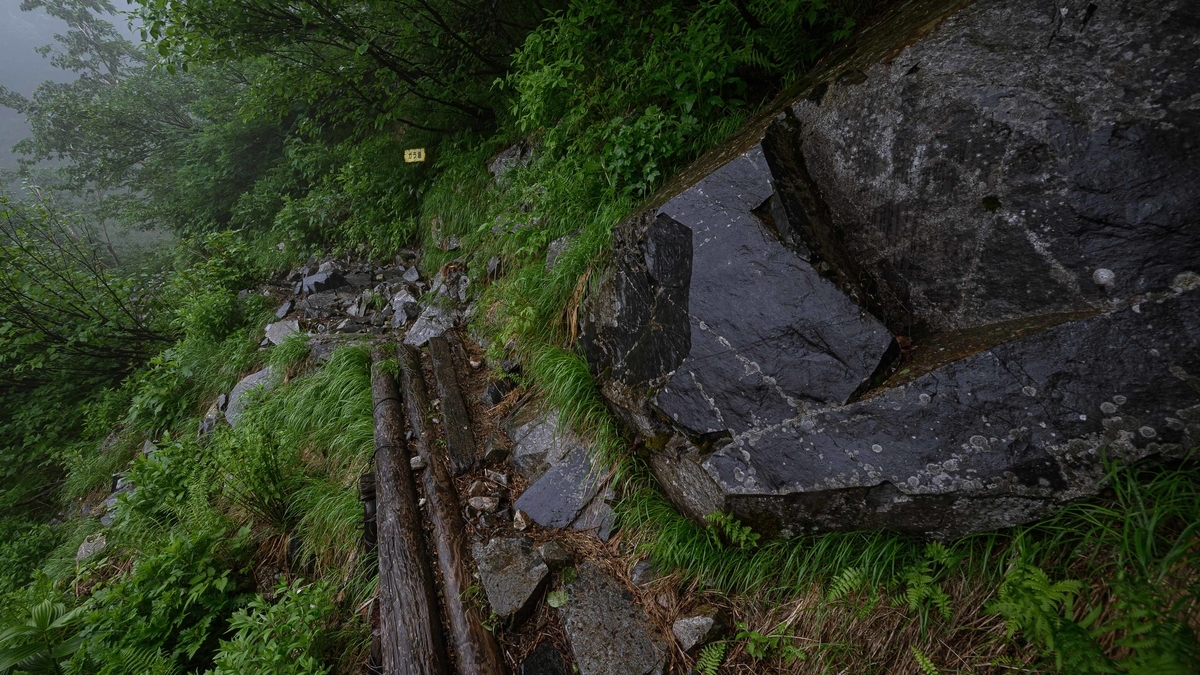 登山道が割と削られててちょっとだけ危ない場所を通過します。