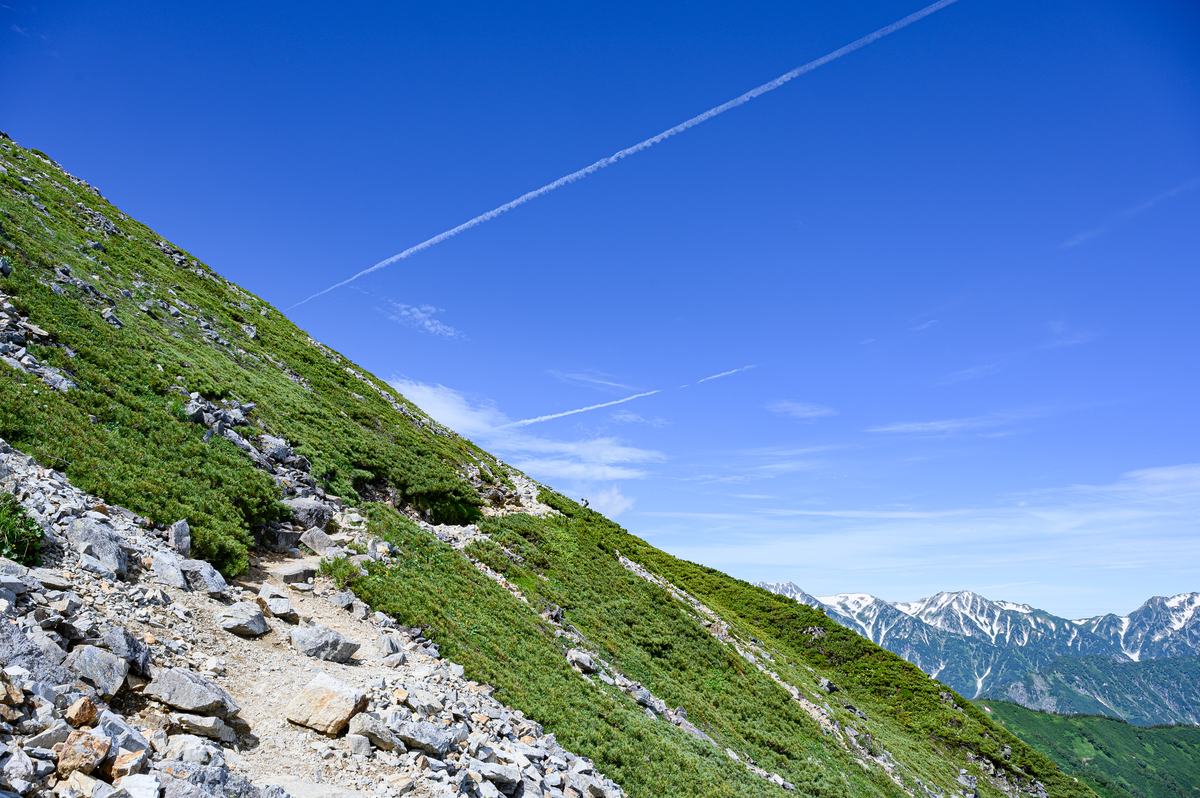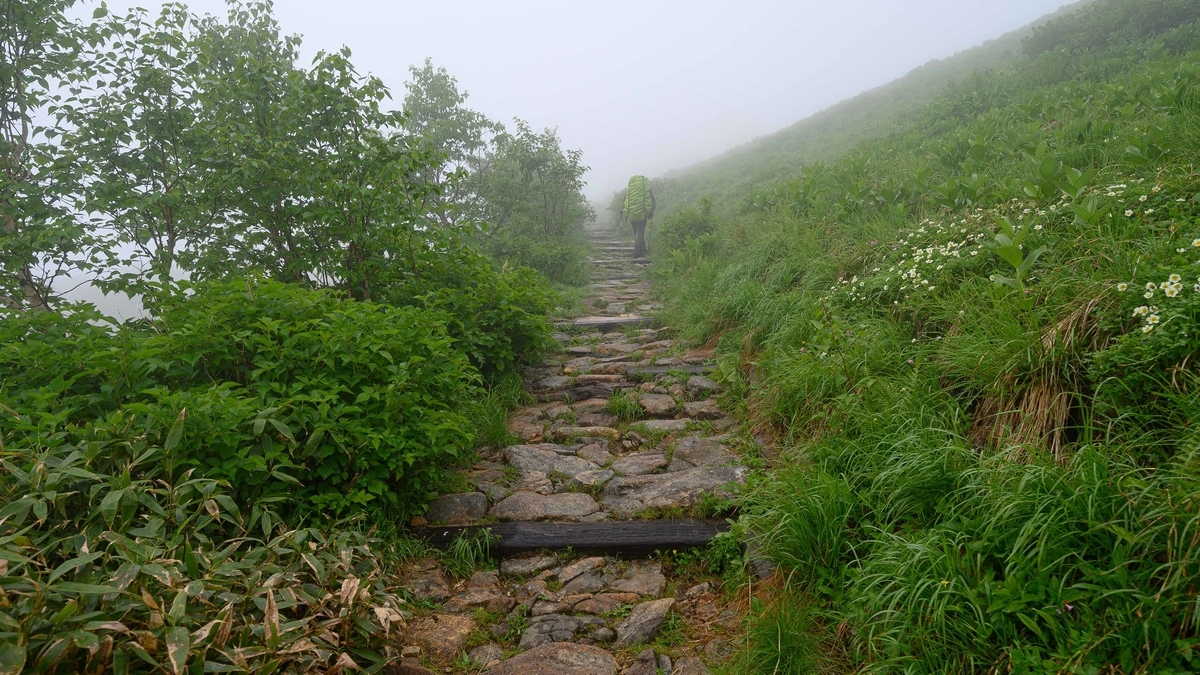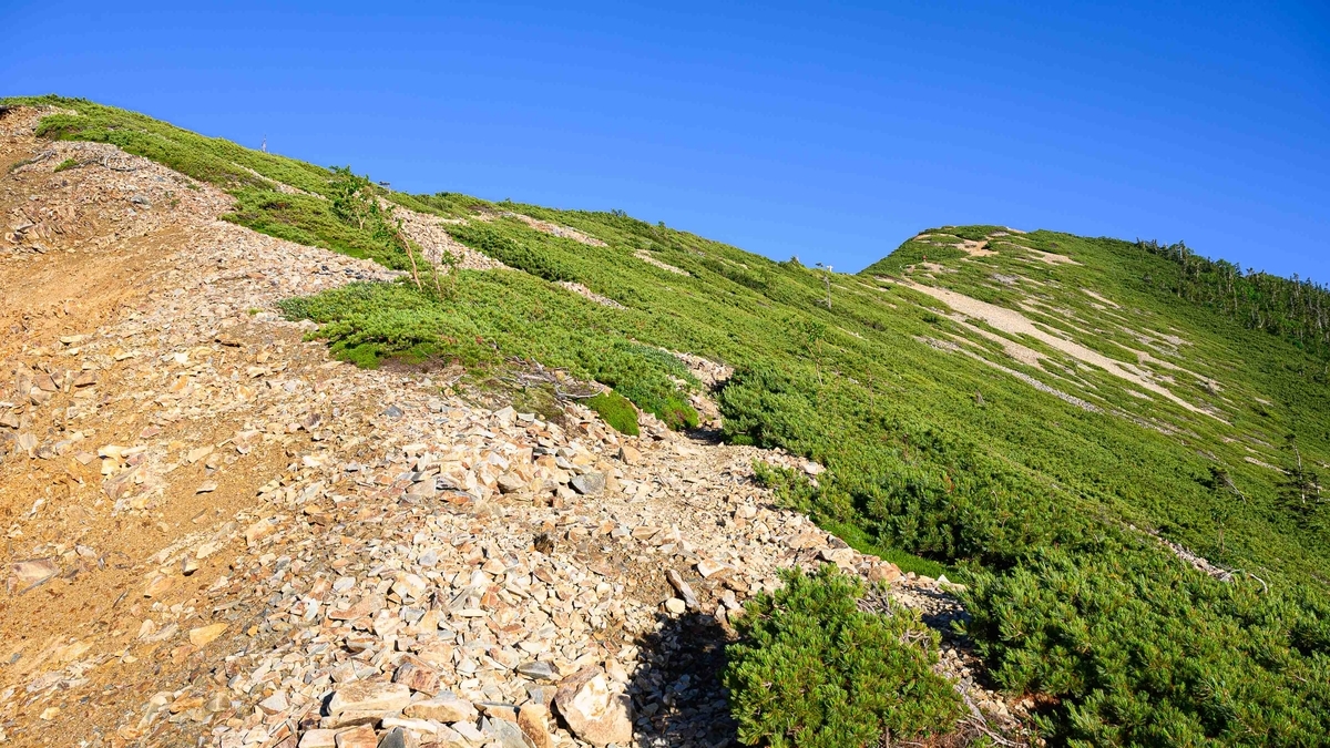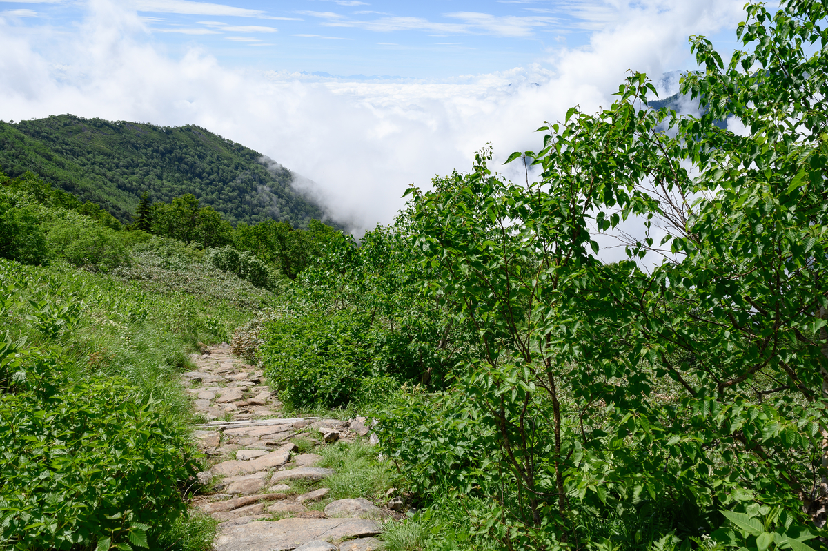 左右に高い山がなく閉塞感がないため「空の上を歩く」を味わえるような道が続きます。