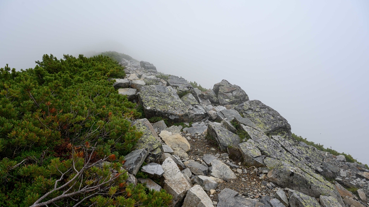 事前情報によると種池山荘さんから先、爺ヶ岳山頂までは天国のような稜線が・・・