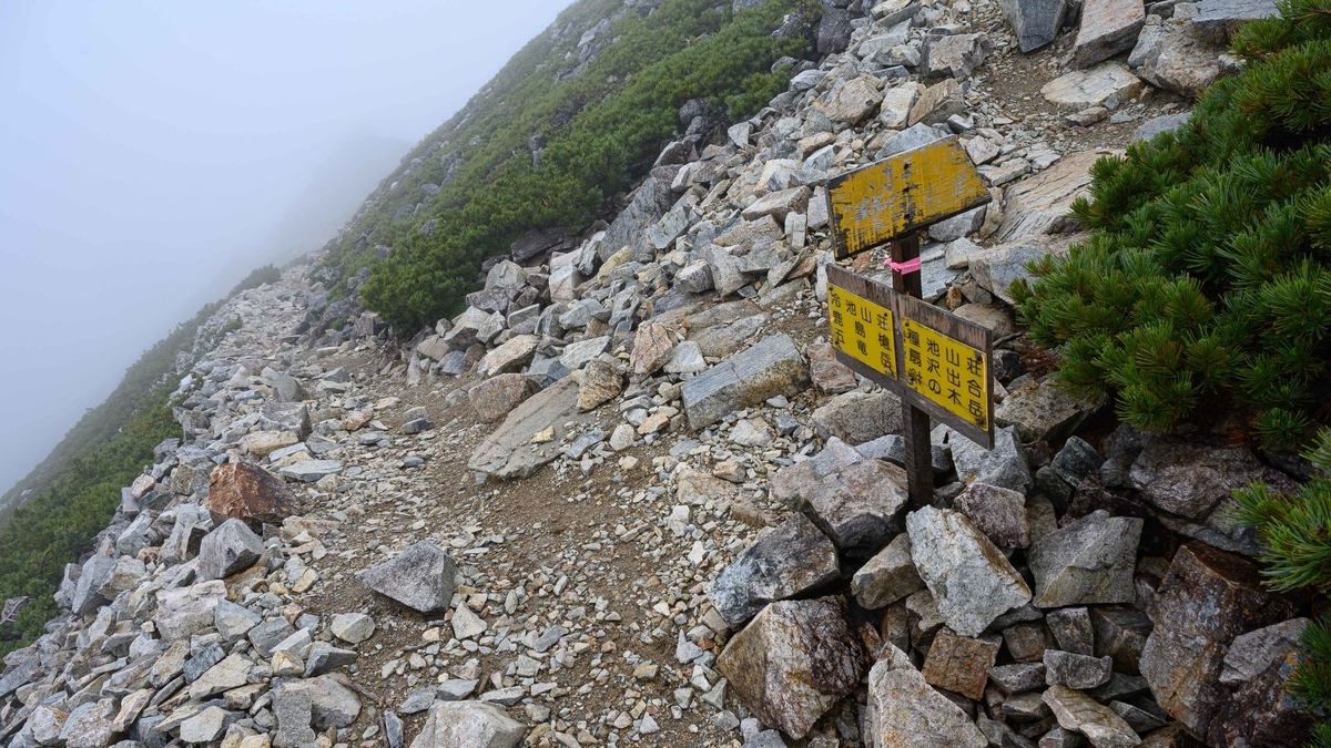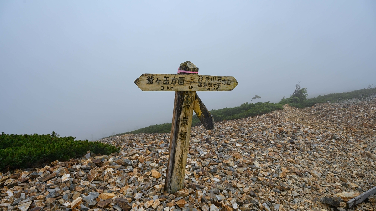 冷池山荘さんから1時間弱で爺ヶ岳山頂への分岐に到着。