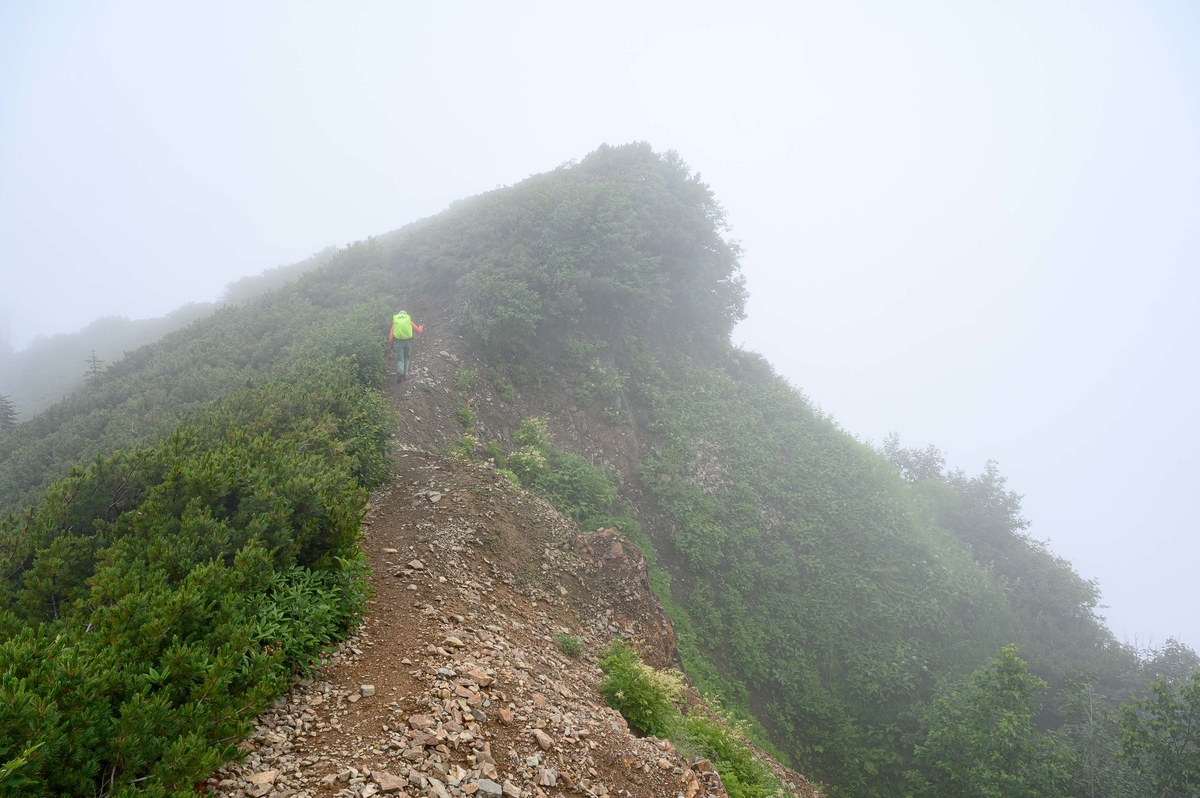 稜線を歩いて高揚した気分は早くも落ち着きました(