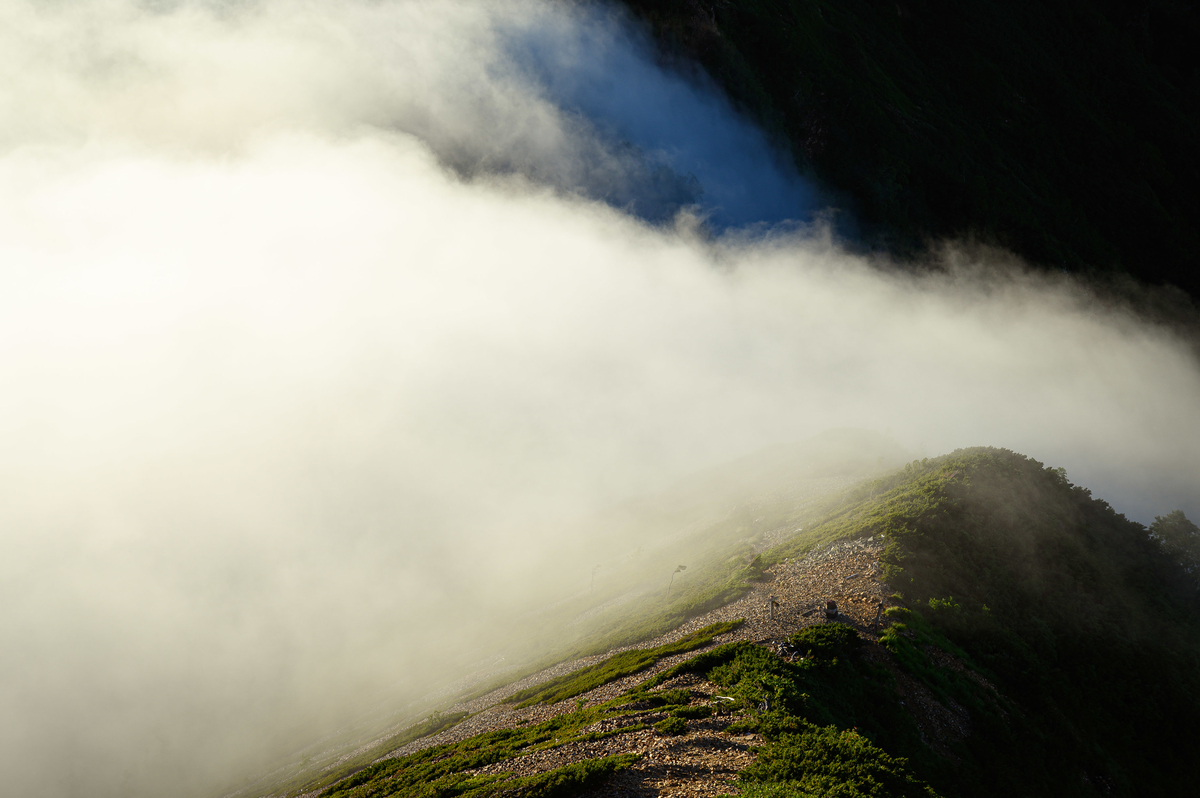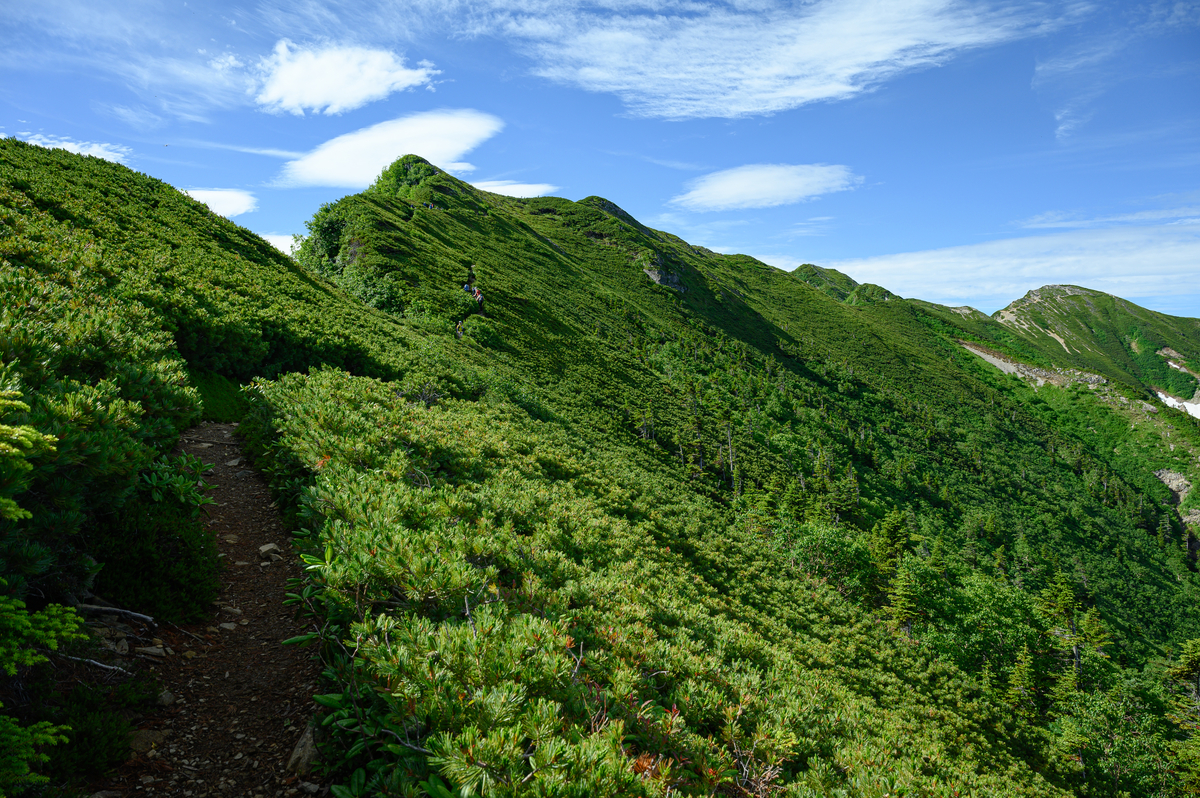 稜線が長く続く分、雲の上を歩く、空を歩く、そんな感じを受ける道です!
