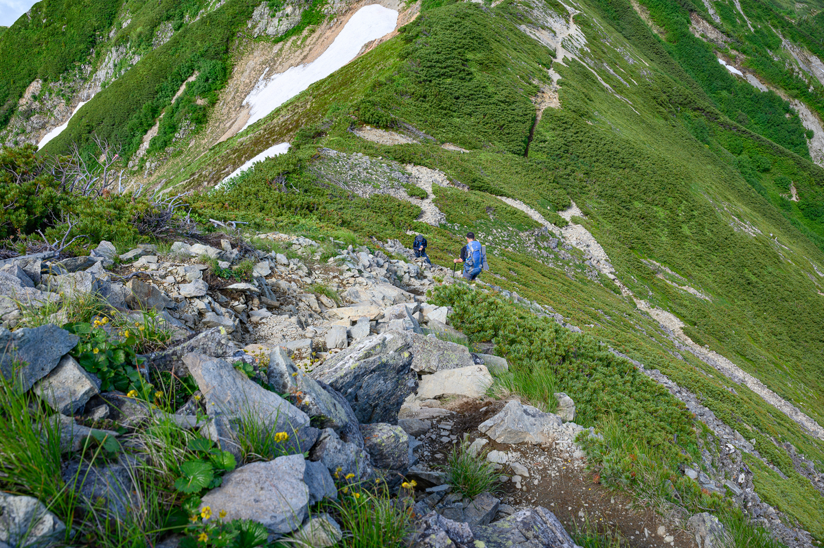 段差が大きい場所には階段があり整備が行き届いているあたりに北アルプスを感じます
