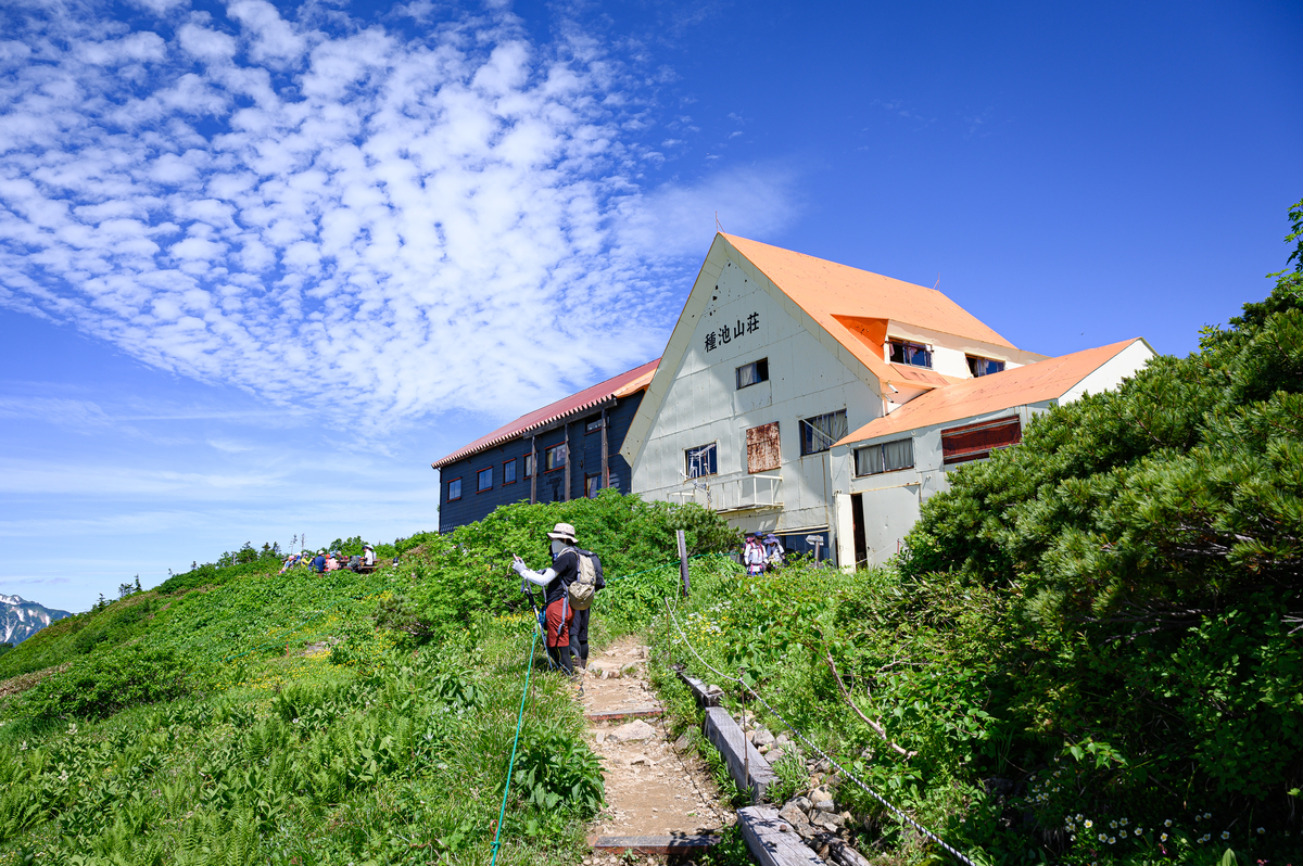樹林帯を抜けたところには種池山荘、鹿島槍ヶ岳手前には冷池山荘、