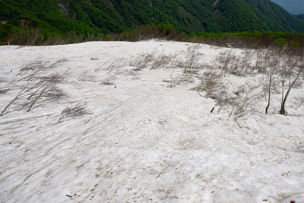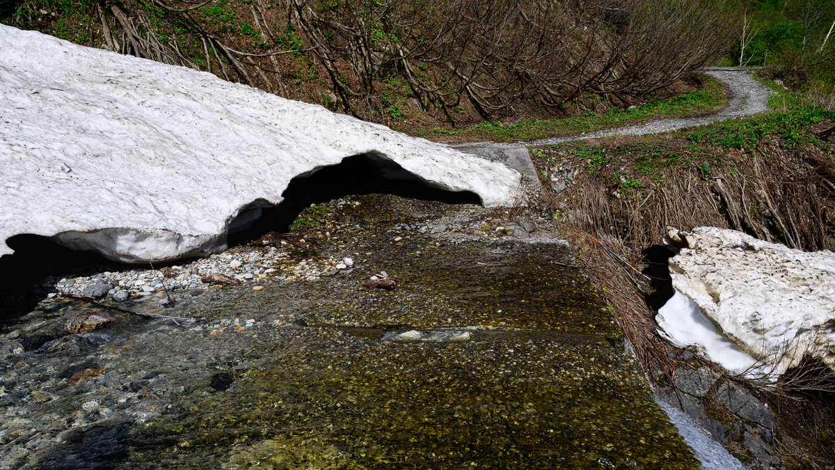 夏でも雪が残ることから積雪量の多さは感じ取れるかと。