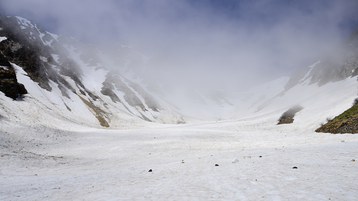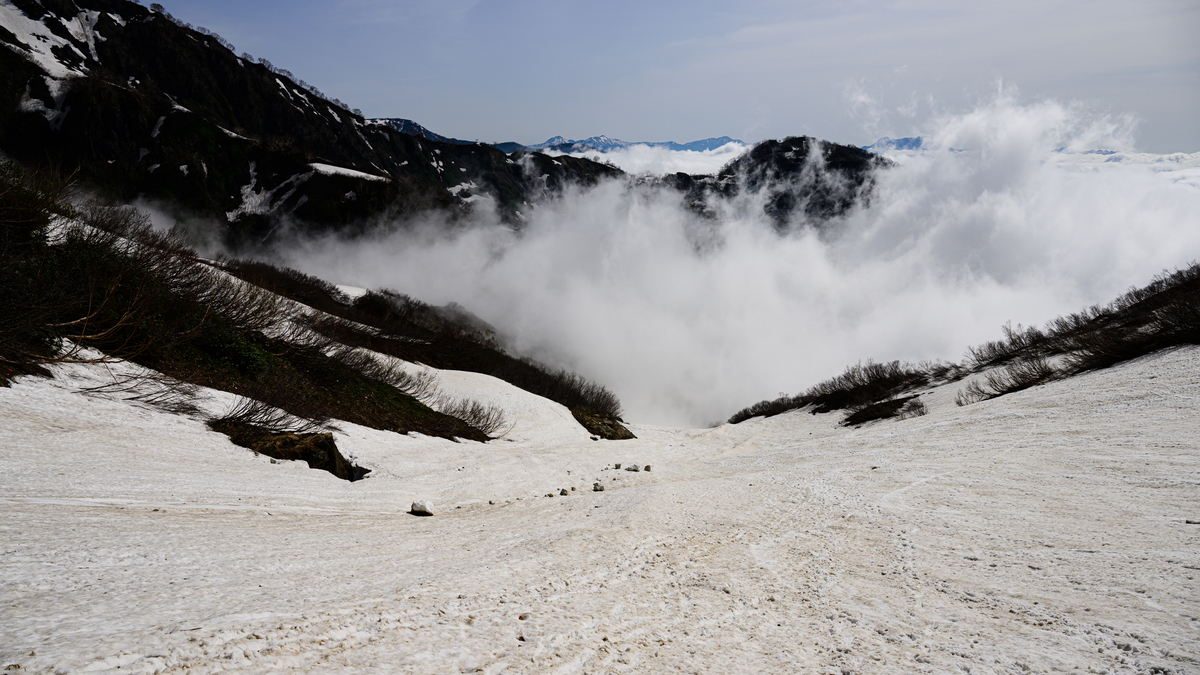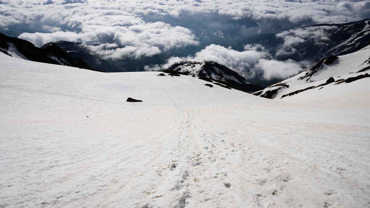 景色に大きな変化はなく、見飽きた雪渓を黙々と下りていきます。