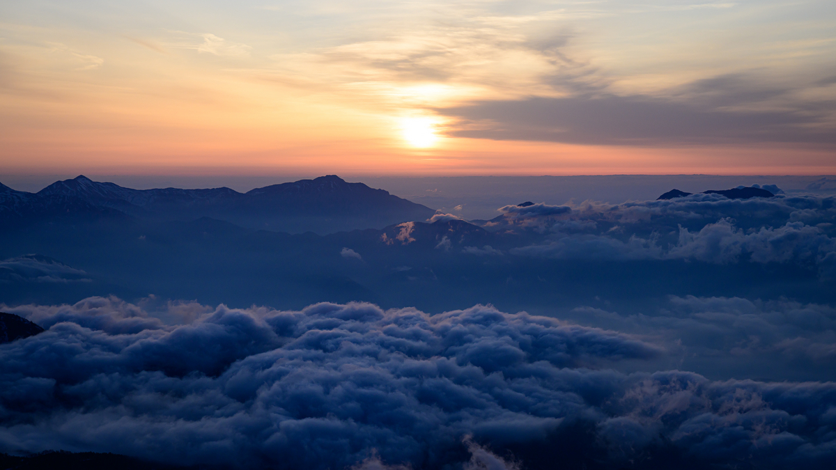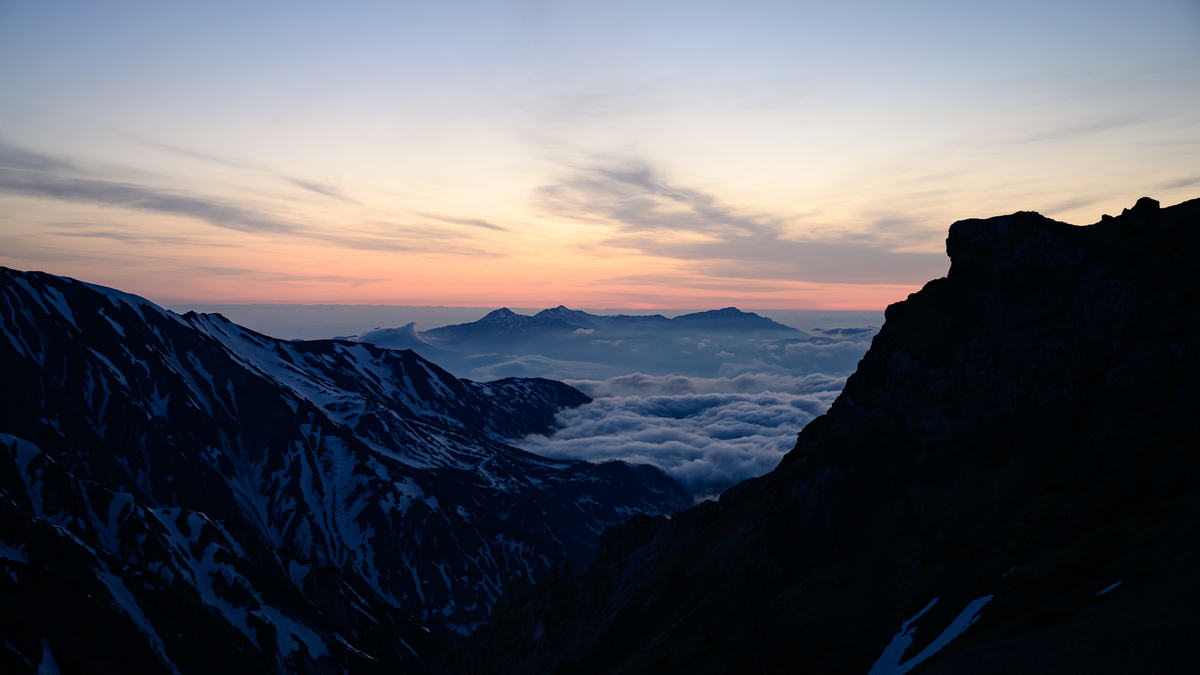 杓子岳へ向かう途中で日の出を迎えます。