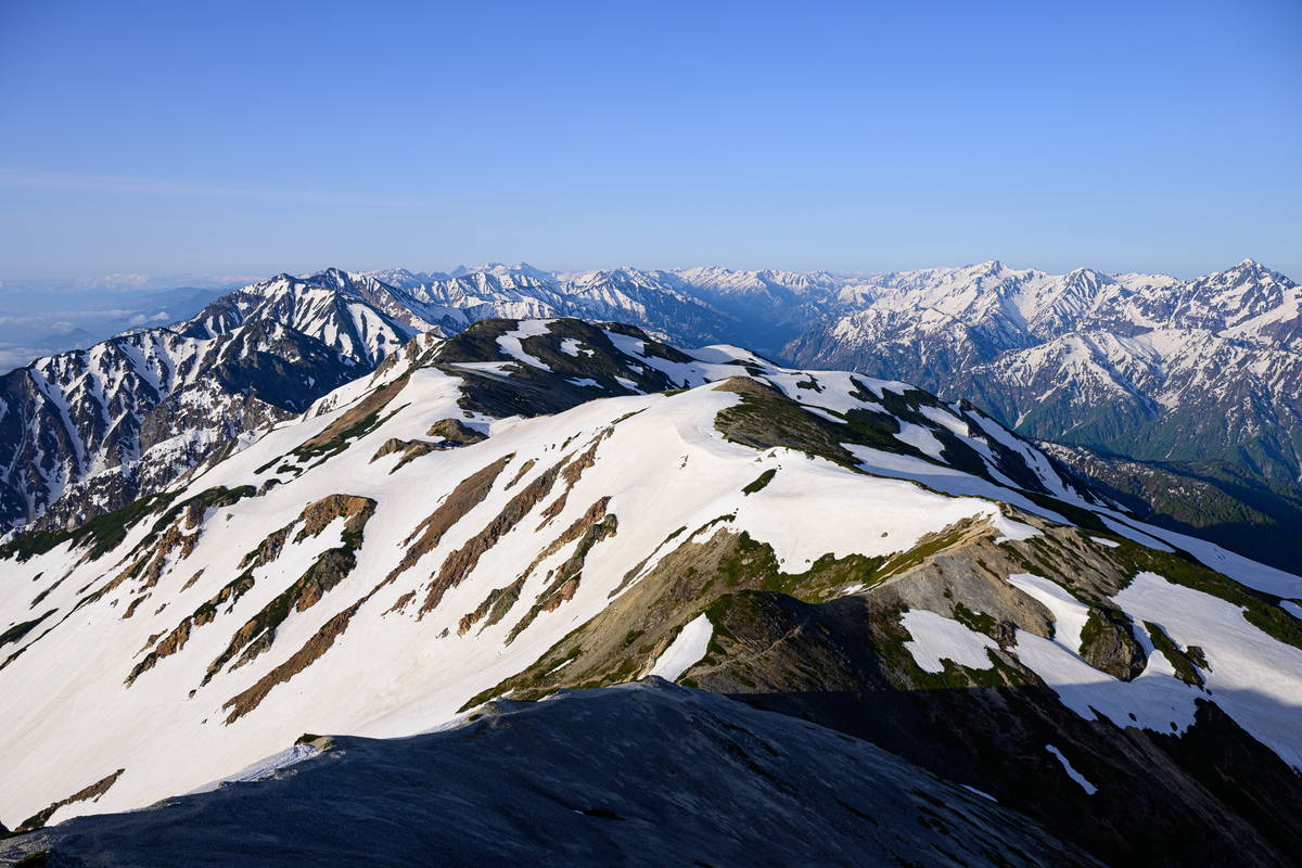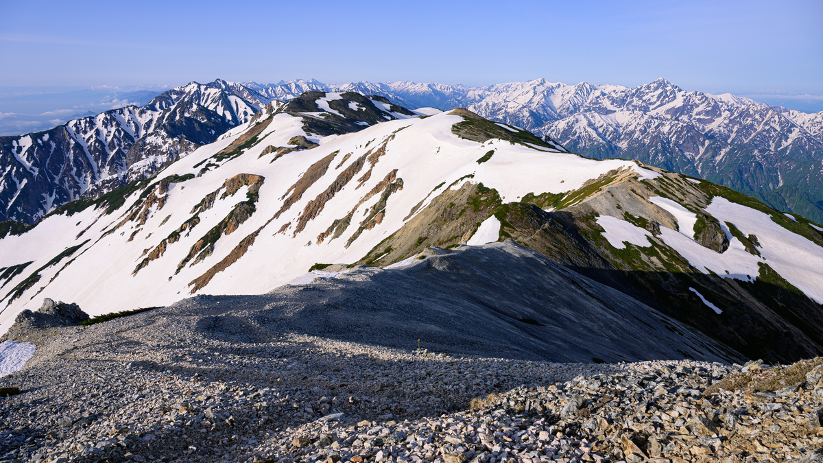 登りも下りも終わらない雪渓に心は折れてしまいましたが、登り切った後の景色をその苦労に見合う価値がありました。 白馬岳山頂は言わずもがな、杓子岳、鑓ヶ岳からの景色も絶品。
