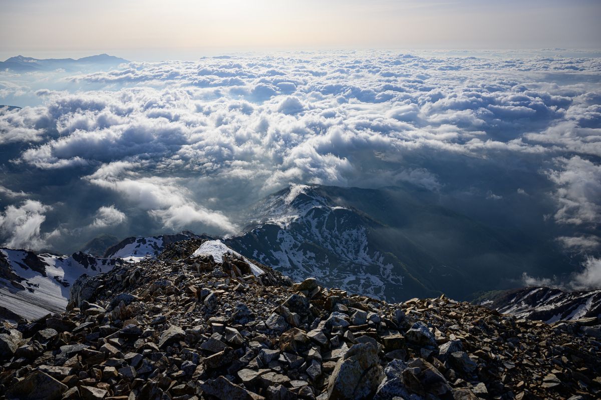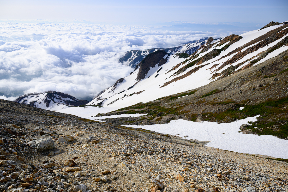 そんな大雪渓を乗り越えた先には以下のような景色が待っていました。
