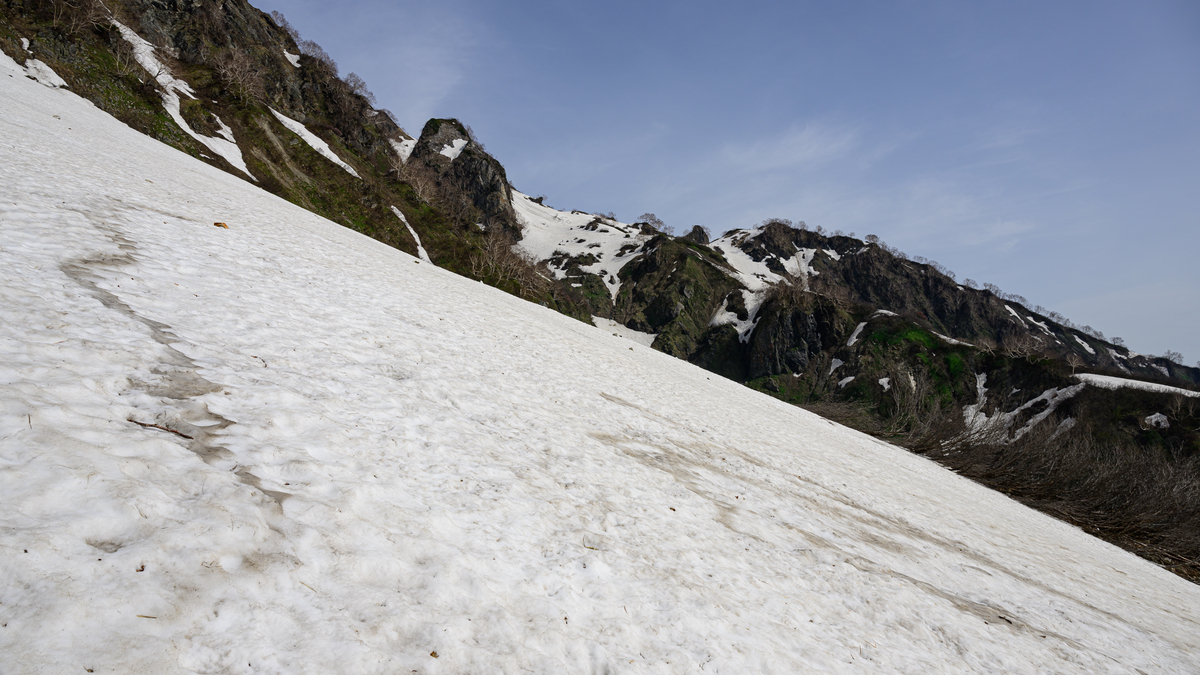 雪渓に取り付いてから約2時間、登山開始から約3時間。